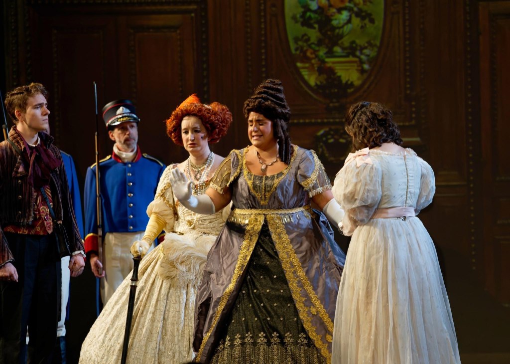 As a Tyrolean villager and the Duchess of Krakenthorpe in Bel Cantanti Opera’s production of Donizetti’s La fille du régiment, fall 2024. Photos courtesy of Bel Cantanti Opera Company.